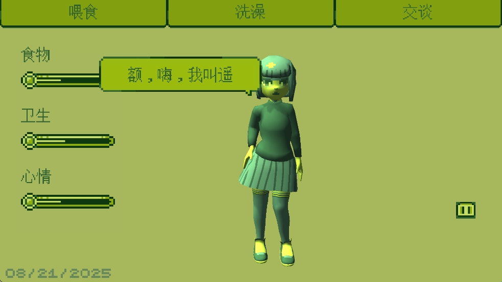 电子女孩是一款剧情丰富的休闲养成游戏。在这里,玩家将拥有一个电子女孩“瑶”,你需要精心照料她,要照顾好她的心情和饥饿感,还要注意她的卫生,帮她洗澡。游戏以日常陪伴为主,玩家对女孩什么样的态度决定了女孩给你什么样的结局,欢迎前来下载游玩。