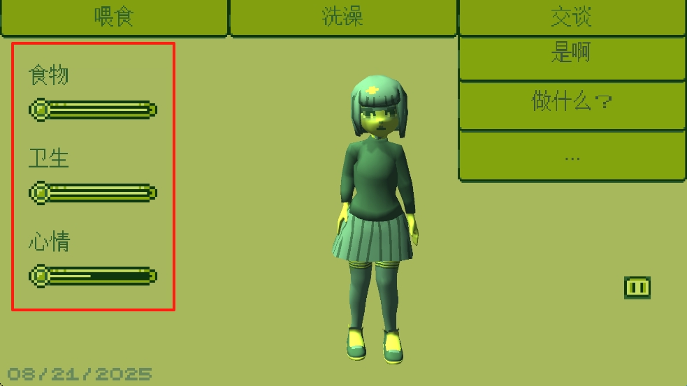 2、有食物、卫生、心情等三个方面的元素,每一次选择都会影响女孩,和女孩互动,发生一些有趣的故事;