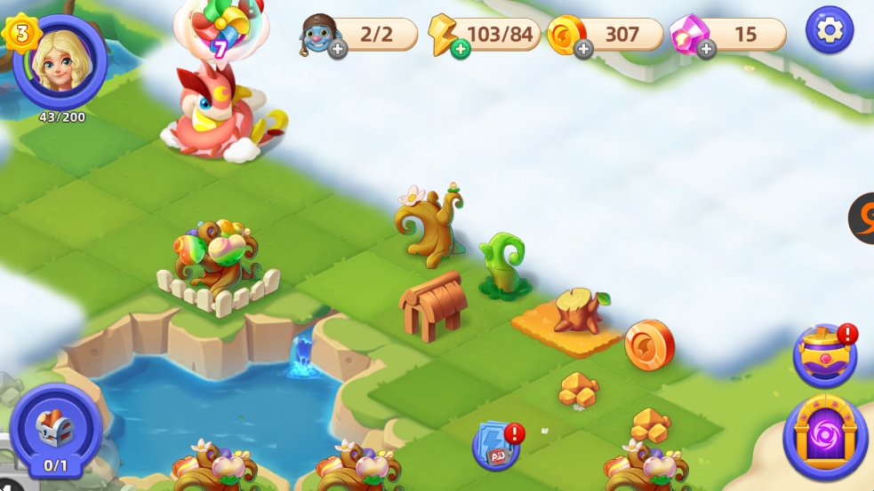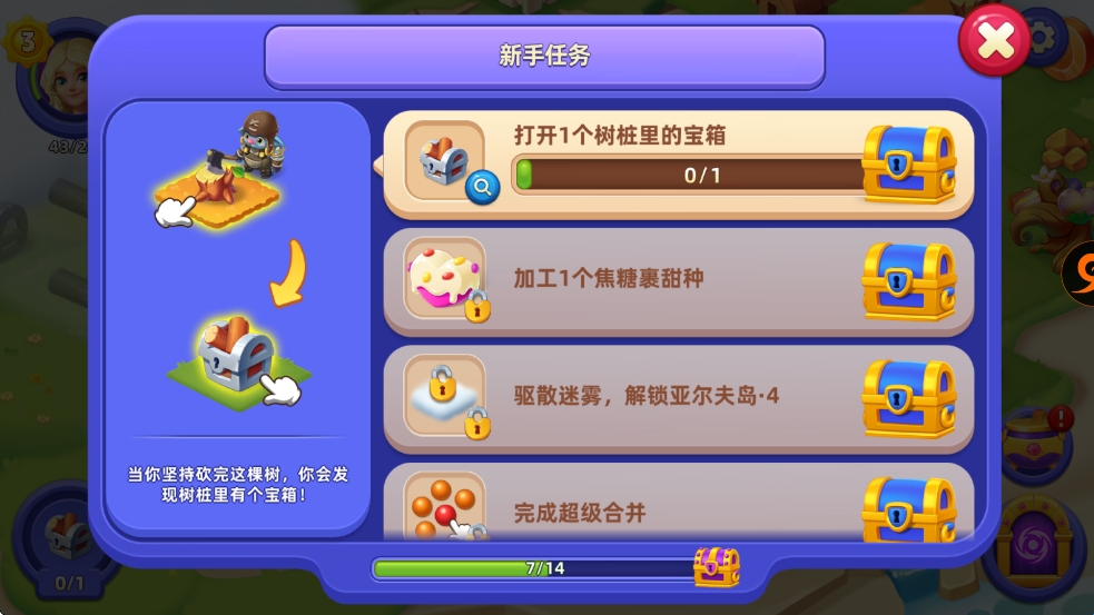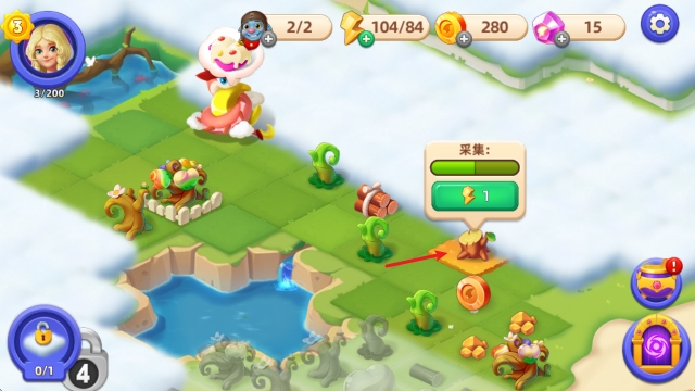 进入合并萌龙岛手游,跟随主线任务可快速解锁核心功能(合成、孵蛋、烹饪、探索等)。
