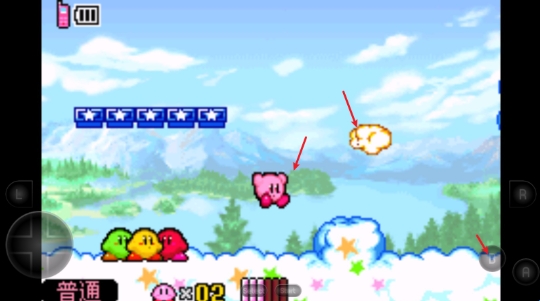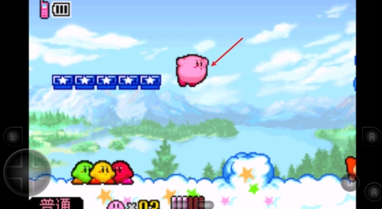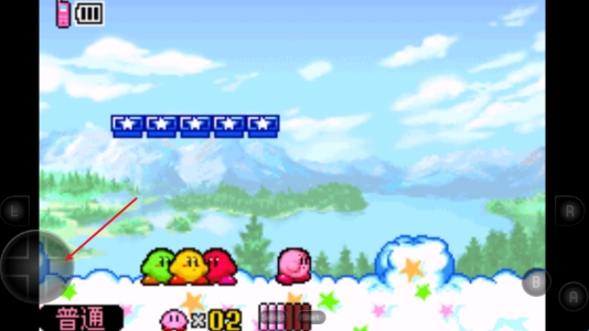 1、游戏中左侧的虚拟摇杆控制卡比进行移动