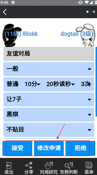 7、然后就轮到玩家选择,若同意点击接受即可,若不同意则点击拒绝或修改申请