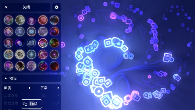 流体模拟器是一款玩法出色的休闲解压小游戏。游戏玩法简单,玩家可以自由选择感兴趣的流体,通过拖动等方式来让手机屏幕展现出多彩的画面,同时还能设置画质、流体细度、粘度、时间等内容,以达到最满意的效果。玩家可以保存制作的作品,并将它们设置成壁纸。喜欢的小伙伴们快来下载吧。