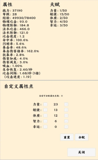 1、分配自定义属性点时,可侧重提升体质类属性,这类属性能增强生存能力,搭配少量力量、敏捷,能在前期战斗中更稳地扛住伤害。