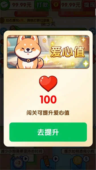 闯关冲冲冲是一款以拯救小狗为题材的休闲益智游戏。进入游戏,玩家就可以看到一个可爱的狗头,由于会有非常多的密封前来攻击它,所以玩家需要给狗头周围画上保护线条,来保护小狗的安全,完成后不仅仅可以顺利过关,还有大量的红包奖励。游戏上手门槛极低,欢迎感兴趣的朋友下载。