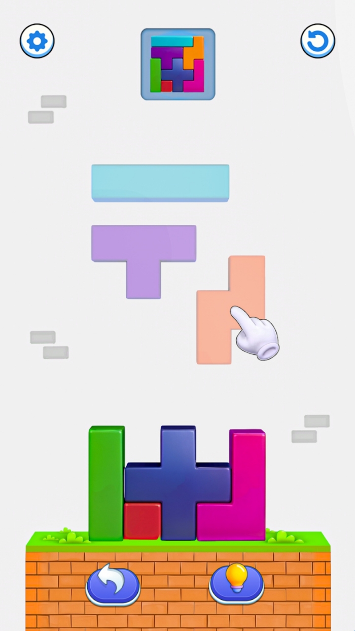 接方块拼图是一款玩法有趣的休闲闯关小游戏。游戏操作简单,每一关都给出了不同的积木图案,玩家得利用下降的方块来进行一比一还原,期间需要不断调整方块的方向与位置,很好的锻炼玩家的智力思维。游戏画面卡通精美,有多项道具辅助玩家过关。感兴趣的小伙伴们赶快下载吧。