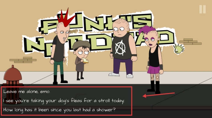 2、遇到小混混时,我们可以从对话框里选择合适的话语,和他们进行对峙,推进剧情。