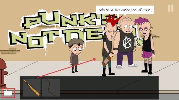4、之后再次面对小混混,我们从道具栏中选择拿到的球棒,向他们发起反击,完成复仇。