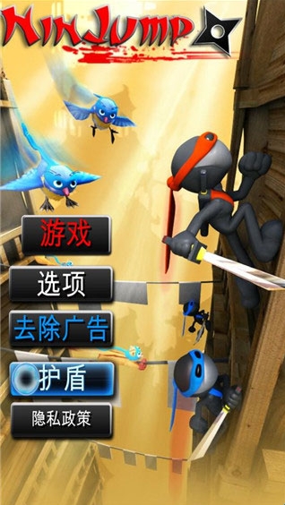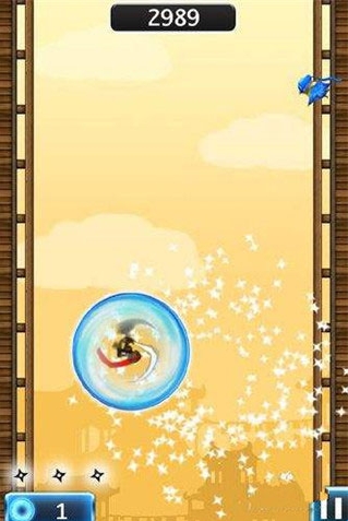 1、玩家的目的是尽量往高处攀爬,在攀爬的过程中要注意避免坏蛋松鼠,飞来飞去的飞鸟,敌人的忍者,飞镖,炸弹等等。