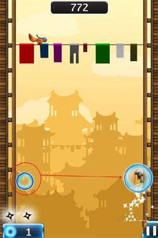 2、只需要点击一下屏幕忍者就会从一边跳到另一边。