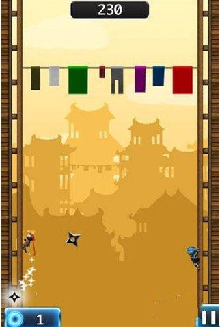 1、玩家操作忍者在两边的平台来回跳跃躲避障碍物,