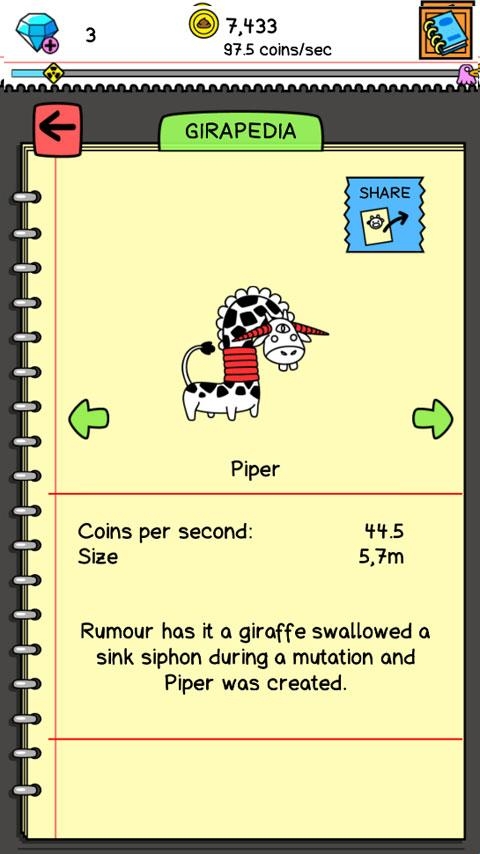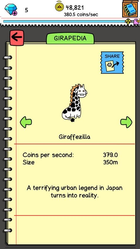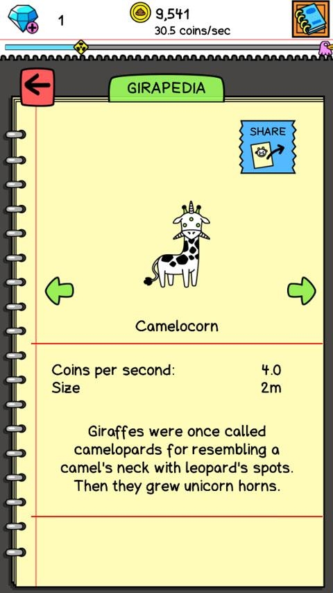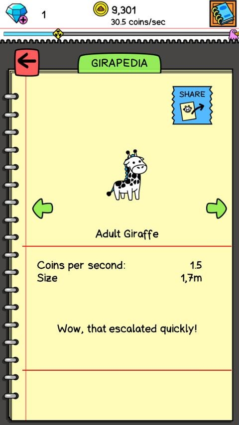 3、将两只长颈鹿合成为一个新的长颈鹿,不同种类的长颈鹿生产出来的金币数量完全不同。