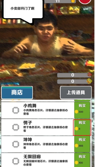 4、里面为玩家提供了非常丰富的角色,如愣子、坤坤、小鸡舞等等角色,我们点击购买即可免费获取到愣子角色;