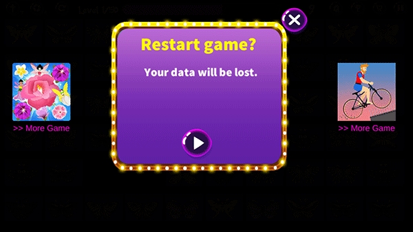 4、如果在后期玩的过程中找不到可以消灭的蝴蝶,可以用右上角的提示按钮来帮助你更快地定位能够消除的蝴蝶。