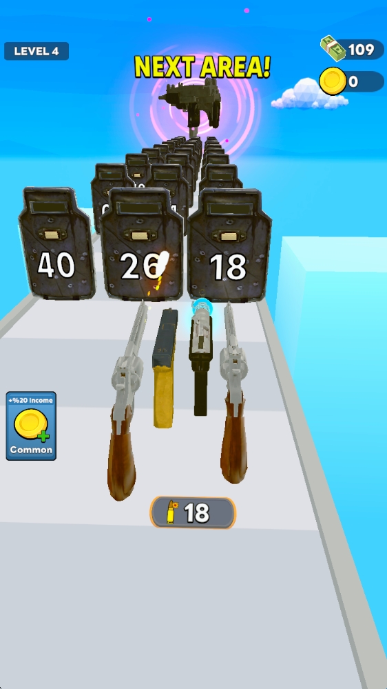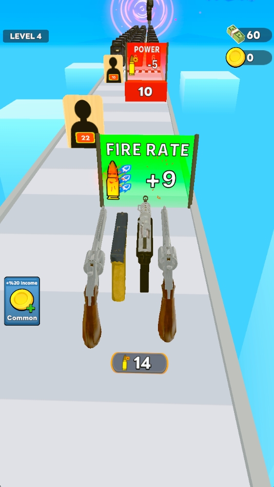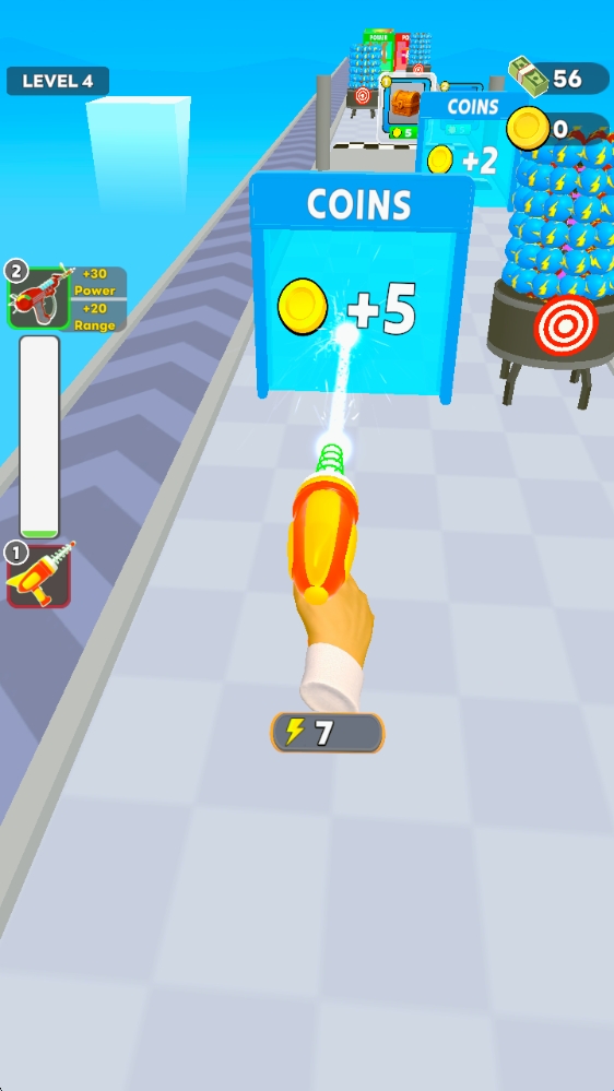 2、拖动武器左右移动即可射击,击中盾牌来增长或者减少数字,从而获得对应属性。