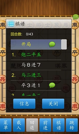 5、支持打谱功能,可载入棋谱文件,浏览棋谱,自动播放棋谱。