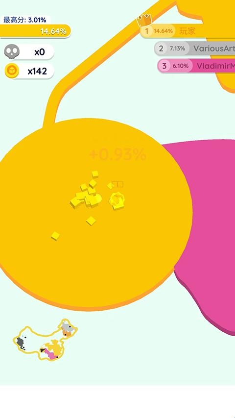 3、玩家将在游戏中自由的进行竞技,提高色彩覆盖率,获得全新皮肤。