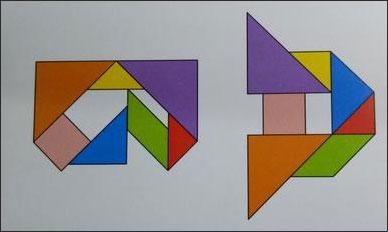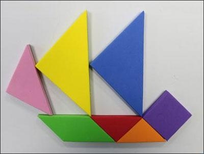 3、你自己的七巧板可以自由地调整位置,调整角度,合理地调整这些
