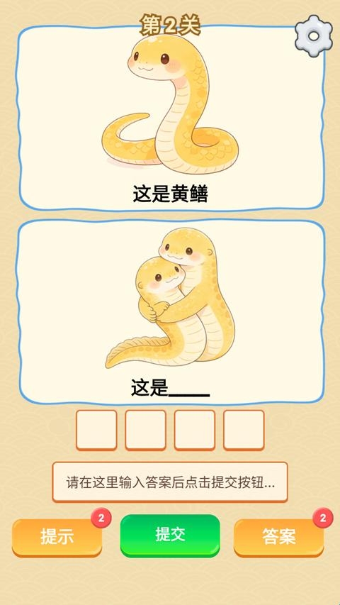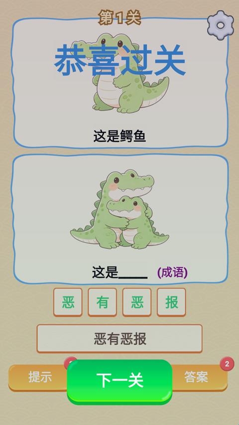 谐音梗游戏是一款收集了网络上大多数谐音梗的休闲益智游戏。进入游戏,玩家将看到两张可爱的图片,通过上图给的提升,来猜出下图的谐音梗,玩家要充分发挥出自己的想象力,才能最快最巧妙地猜出其中精髓。游戏里每一关都是一个独立的关卡,而且还在不断推出新的关卡,欢迎感兴趣的小伙伴下载体验。