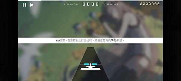 5、校准完成后进入教程,在音符到达打击线时,顺着音符方向滑动轨道。