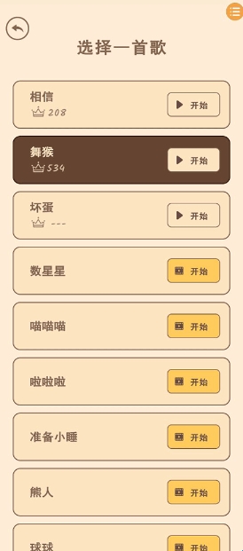 2、这个时候我们就可以看见我们现在所解锁的歌曲,现在只需要在我们想游玩歌曲的画面点击播放就可以了。