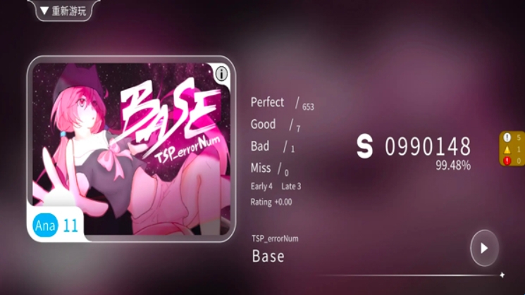 4、进入游戏如图,玩家需在音符接触到判断线后点击;