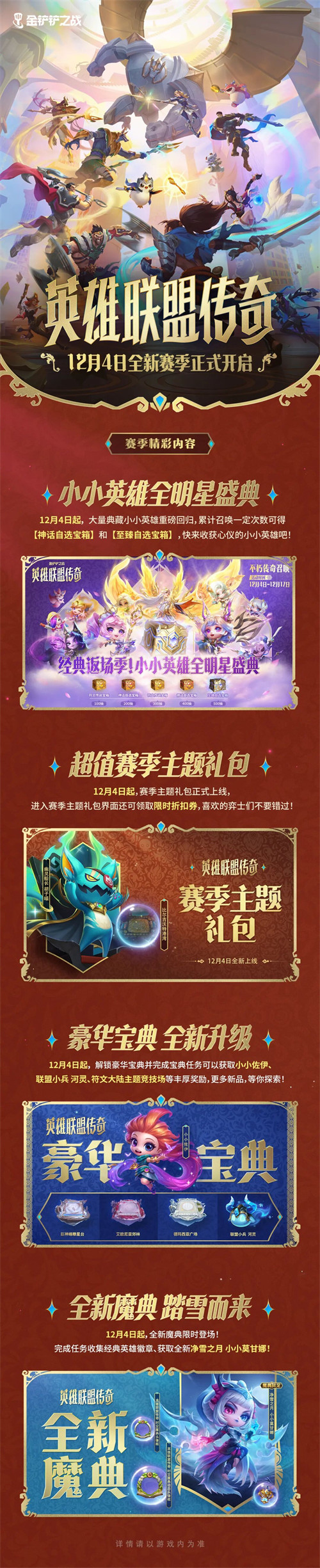 弈士们,准备好了吗?12月4日,金铲铲之战全新赛季【英雄联盟传奇】狂欢即将开启!