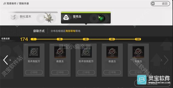 3、可以看到有紫色品质和蓝色品质的复活药(刻术瓶),平时多捡萤壳虫就能解锁