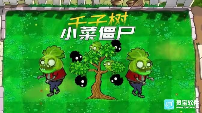 千子树上面挂着小菜僵尸,本行遇到僵尸,会随机生产出正常或魅惑小菜僵尸