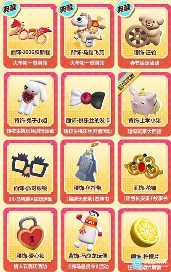 典藏配饰:面饰-2026跃新程、背饰-马踏飞燕、腰饰-汪轮(大年初一登录即领)。